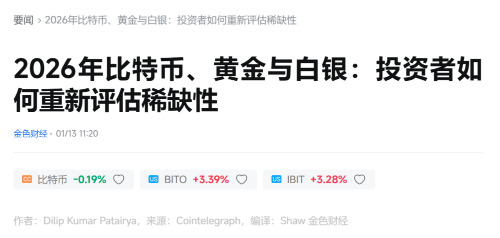 本文探讨了投资者讨论比特币、黄金和白银的方式正在发生怎样的变化,并分析了不同因素在决定稀缺性重估中所起的作用。